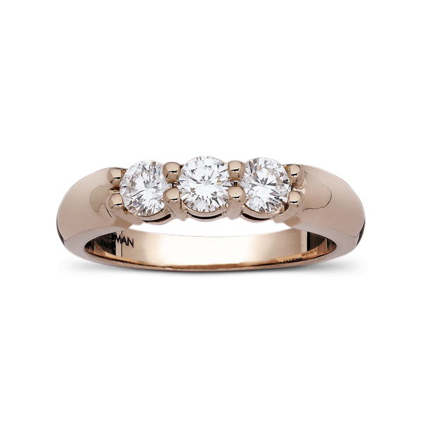 Hand-crafted in the finest tradition, this classic wedding band in 18k rose gold (4.90g) is set with three G VS diamonds for a total of 0.62 carat. The stones are bezel-set with twin flanges and secured by two prongs. Different gold colours and polishes are also proposed. A ring of this quality is the perfect symbol of the eternal bond of marriage. As part of its service, Gottesman-Paris adapts to your price range and invites you to choose the size and number of diamonds in your ring.Hand-crafted in the finest tradition, this classic wedding band in 18k rose gold (4.90g) is set with three G VS diamonds for a total of 0.62 carat. The stones are bezel-set with twin flanges and secured by two prongs. Different gold colours and polishes are also proposed. A ring of this quality is the perfect symbol of the eternal bond of marriage. As part of its service, Gottesman-Paris adapts to your price range and invites you to choose the size and number of diamonds in your ring.