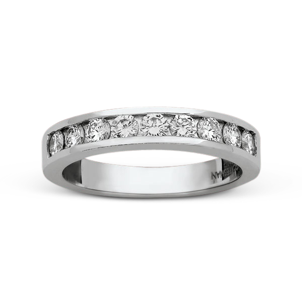 Alliance diamants en or blanc 18k d'un poids de 4.60gr avec 9 diamants sertis rail de qualité G VS d'un poids de 0,62 carats. Ce modèle d'alliance classique est entièrement façonné par la main du joaillier dans le respect de la tradition artisanale. Vous avez aussi le choix de la couleur et du poli de l'or. Ces critères de qualité confèrent à ce bijou la notion d'éternité liée au mariage. Pour être en accord avec votre budget, Gottesman-Paris vous offre la possibilité de choisir la grosseur et le nombre diamants.