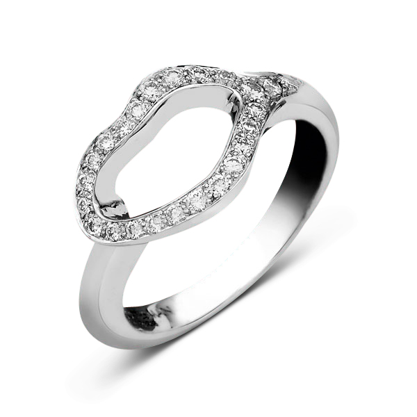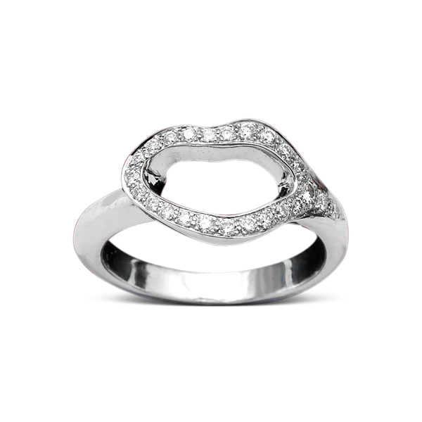 Bague fine signée Gottesman-Paris en or gris 18k d'un poids d'or de 4.5gr. figurant la forme d'une bouche et pavée tout autour de 29 diamants brillants d'un poids de 0,15 carats. Notre service atelier sur mesure vous donne la possibilité de choisir la couleur et le poli de l'or ainsi que la grosseur des diamants.