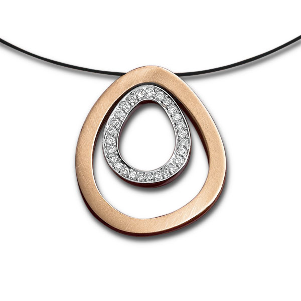Ce pendentif en or rouge 18k signé Gottesman-Paris est composé d'un motif Trianon puis, reposant à l'intérieur de celui-ci, un petit Trianon serti de 20 diamants brillants d'un poids de 0,19 carats. Il est soutenu par un cordon qui le traverse dans sa partie supérieure. Son poids est de 5g. Notre atelier vous le propose en différentes couleurs d'or ainsi qu'en différentes versions de pavage de diamants.